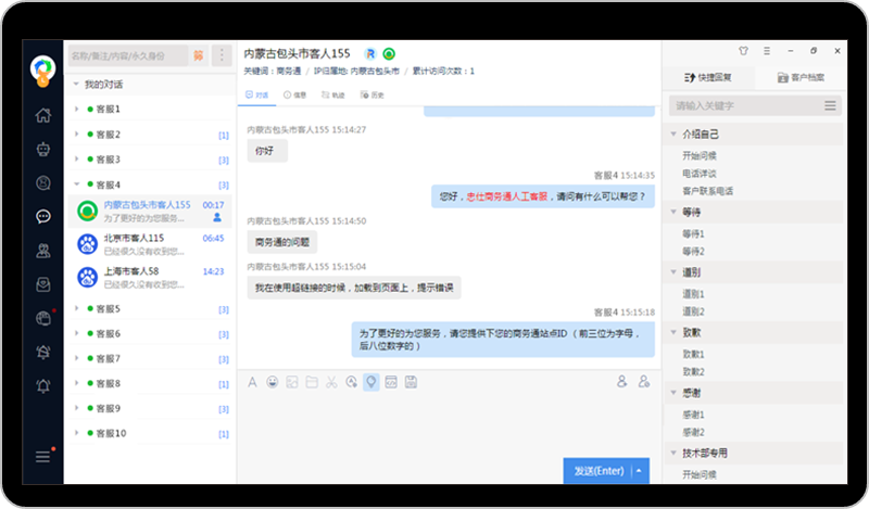 多渠道汇聚一处,会分配对话的在线客服系统忠仕商务通能实现多渠道多终端覆盖,在线稳定性可靠。